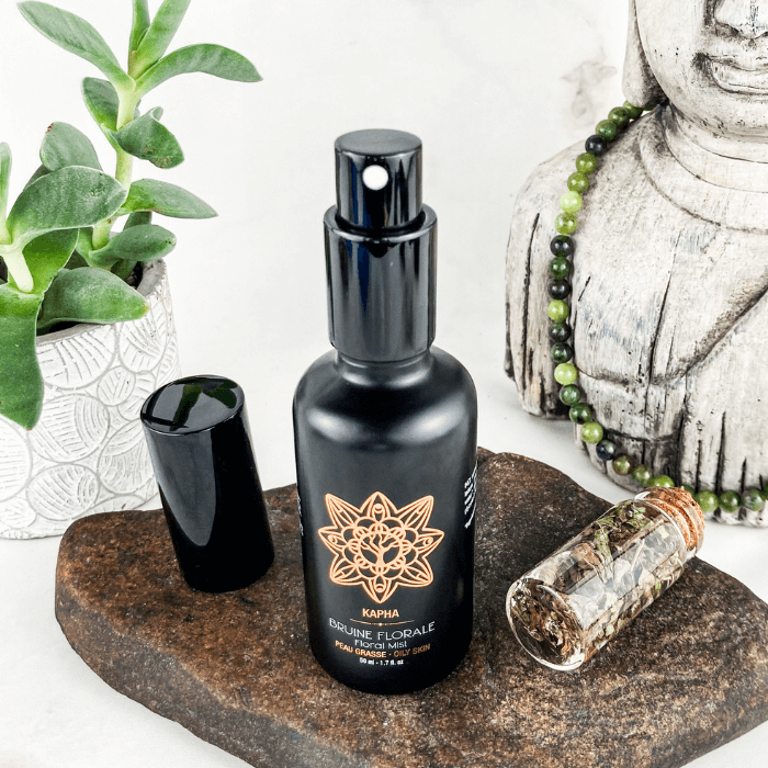Tonifiez votre peau et équilibrez votre Dosha avec la Bruine Florale Kapha peau grasse, inspirée de l’Ayurveda et fabriquée au Québec à partir d’ingrédients biologiques.